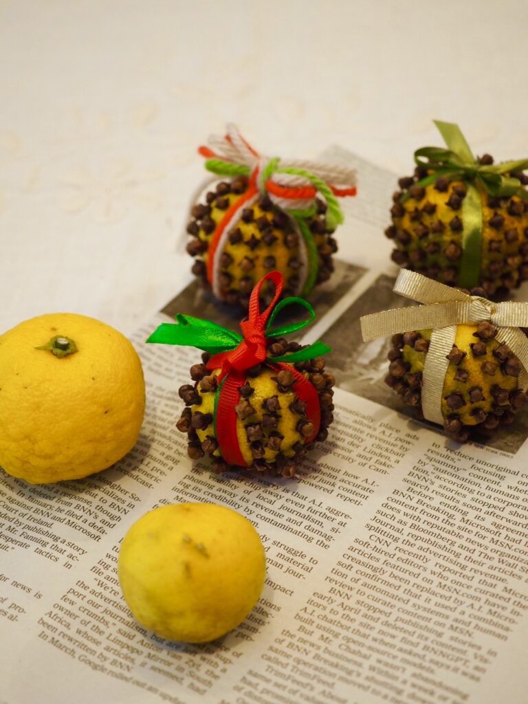 今回の講座では、クリスマスの飾り付けに最適なフルーツポマンダーを作ります。