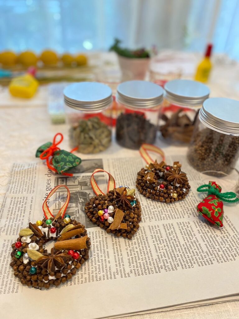 スパイスで作るオーナメントは、とてもいい香りがします。